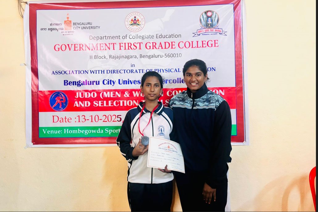 We are delighted to announce the achievement of our student Ms.Noor Saba of 2nd year BCA who won Bronze medal in the Bengaluru City University Inter-Collegiate Judo Competition and Selection Trials 2025-26, organized by the Department of Physical Education and Sports, BCU.